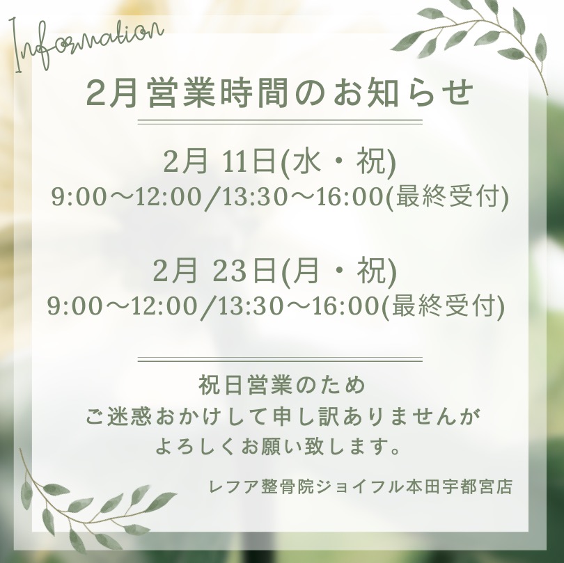 【2月の営業時間案内】
